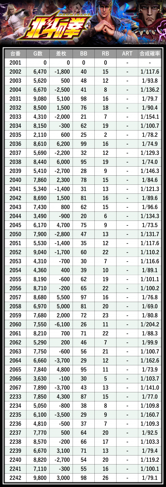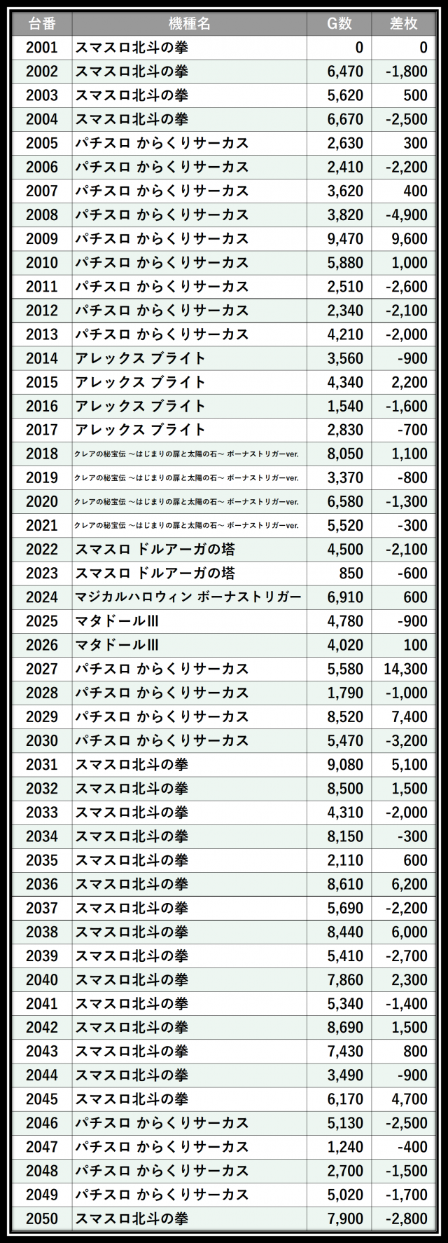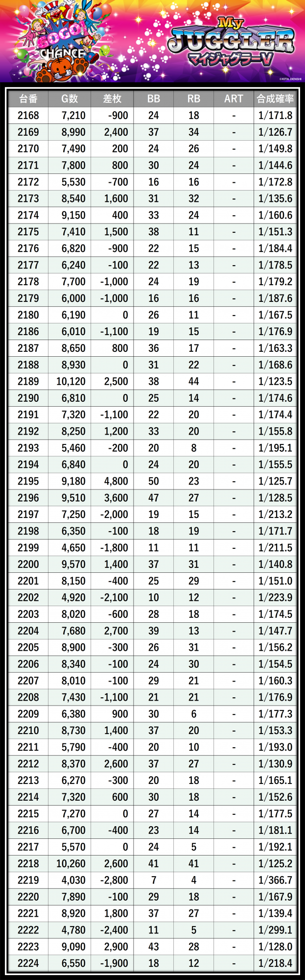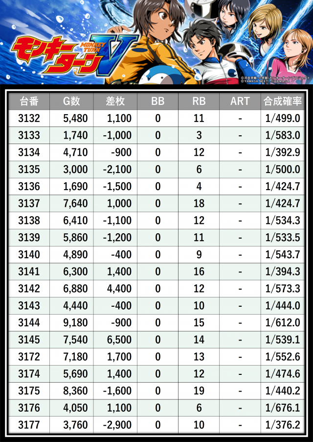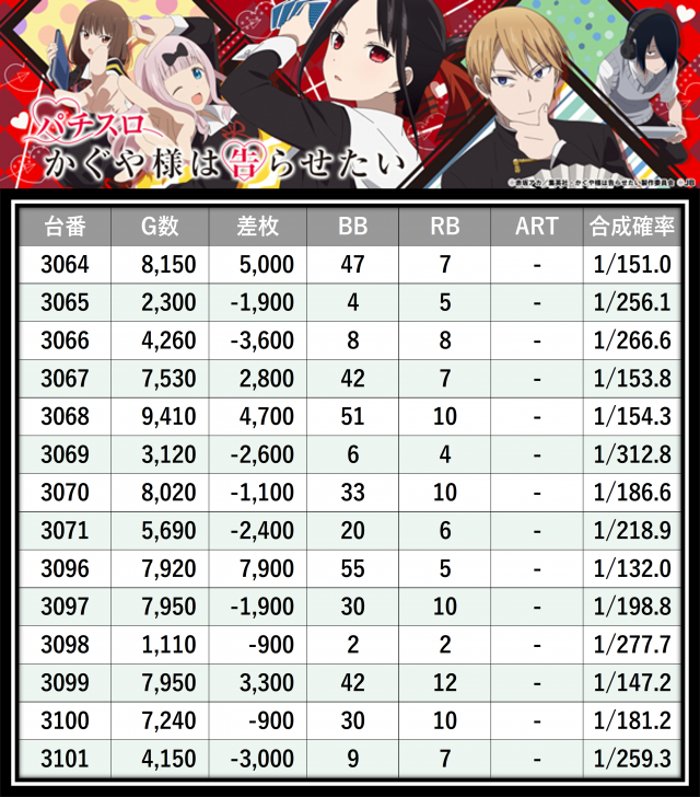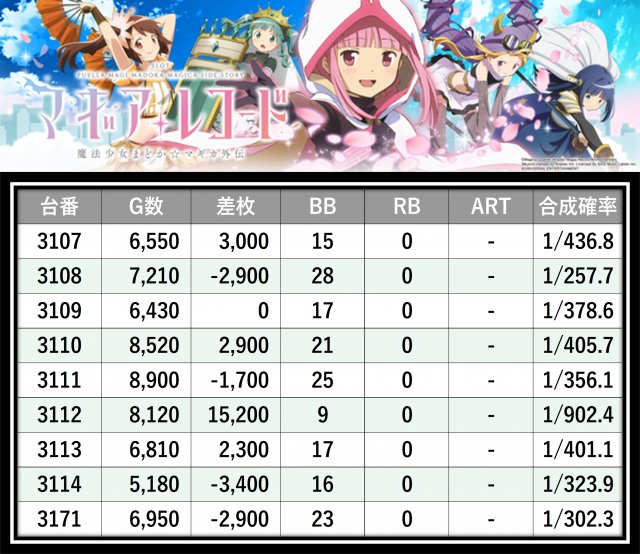※差枚数順に掲載しています
