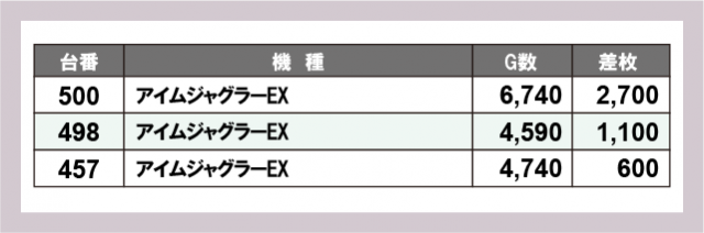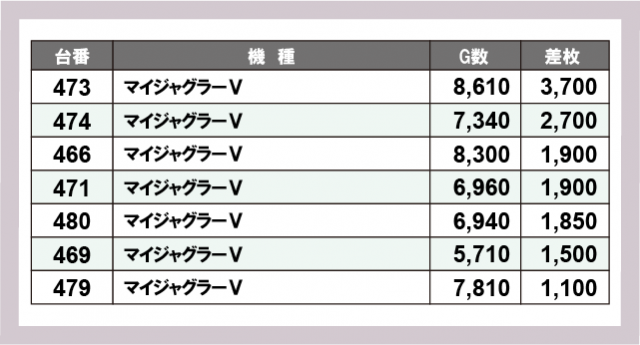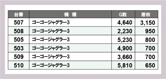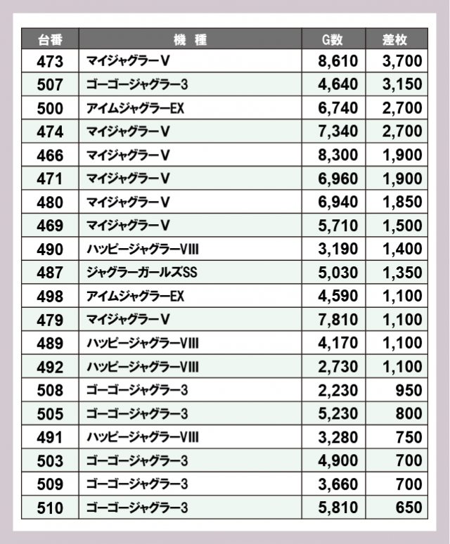 ジャグラー差枚ランキング