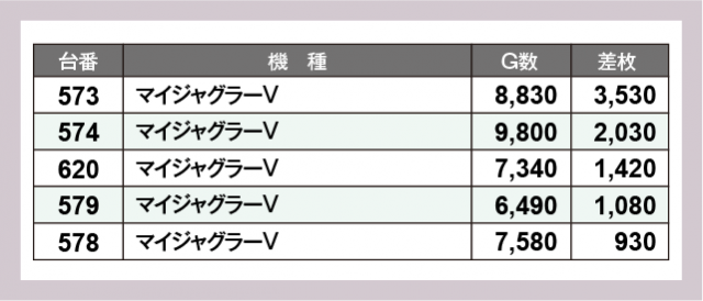 ※差枚数順に掲載しています