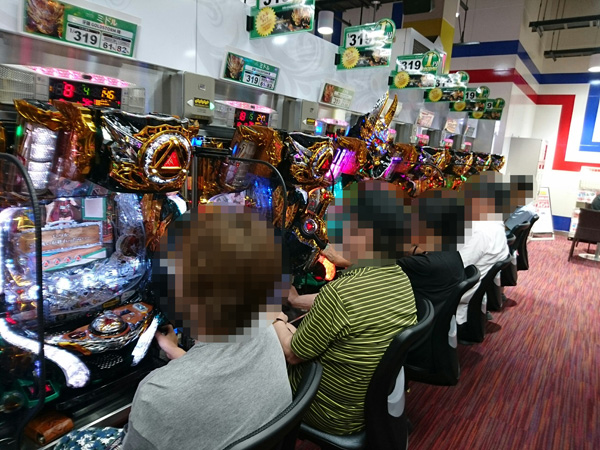 パチンココーナーの人気も高い。「ぱちんこCR北斗の拳7 転生」や「CR牙狼GOLDSTORM翔」などが特に活況。機種の魅力をたっぷりと堪能しているように思えた。