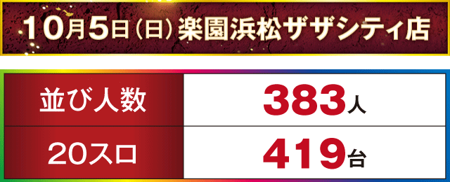 店内中のあらゆる機種から好成績が飛び出し、大盛況のまま幕を閉じた「楽園浜松ザザシティ店」の「絶対に負けられない戦いがある取材」。次回以降も十分期待できそうなだけに、今回の結果をしっかりとチェックしつつ同店の動向にも注目しておこう。