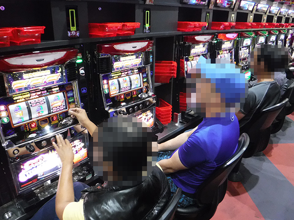 「ファンキージャグラー」や「ジャグラーガールズ」などジャグラーシリーズも多くのプレイヤーが集まり、賑やかなムード。