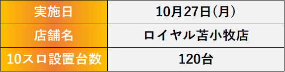 10月27日(月) ロイヤル苫小牧店にて、DMMぱちタウンの新感覚取材「スロセレ低貸ver.」を実施。