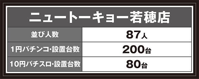 10月19日、長野県長野市にある「ニュートーキョー若穂店」へと向かった。今回の取材は、「低王RESEARCH」だ。パチンコでもパチスロでも、じっくりと遊技を楽しんでいるといった姿を目にした。
