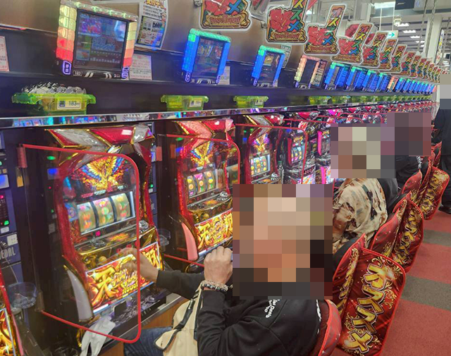取材時に「ハナハナホウオウ~天翔~-30」や「マイジャグラーⅤ」で1箱以上、「ファミスタ回胴版!!」で2箱以上の持ち玉を確認。