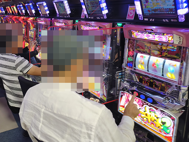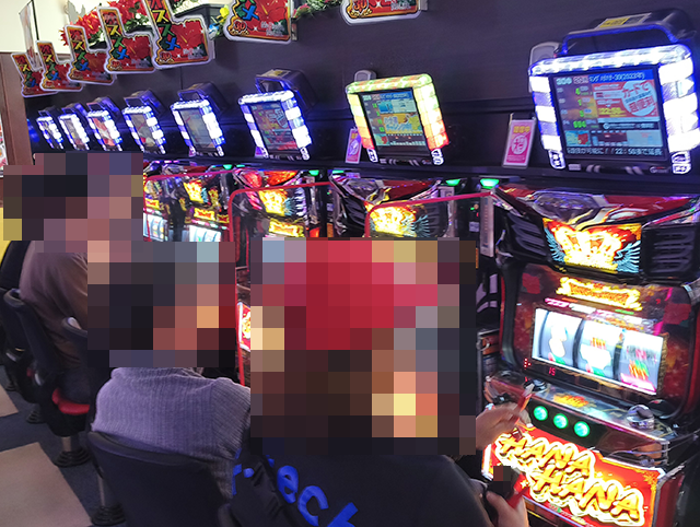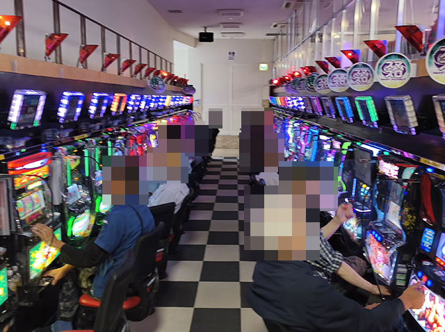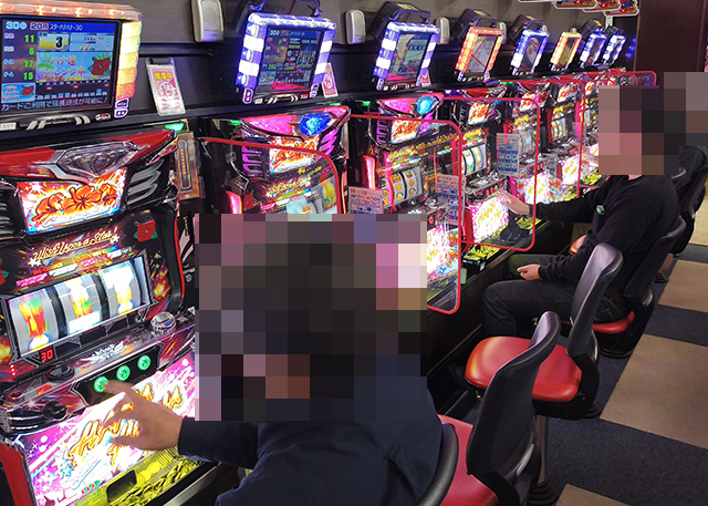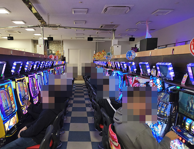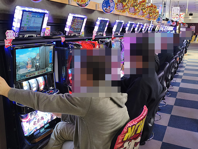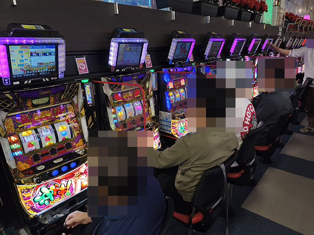 「アイムジャグラーEX」や「スマスロ北斗の拳」など、プレイヤーはさまざまな機種で楽しそうに遊技をおこなっていた。
