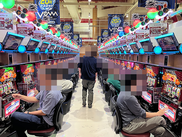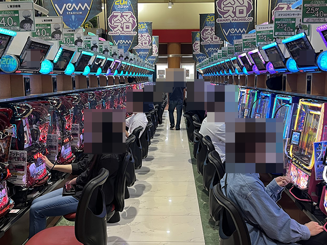 パチンコとパチスロのどちらにも、にぎやかな光景が広がっていた。