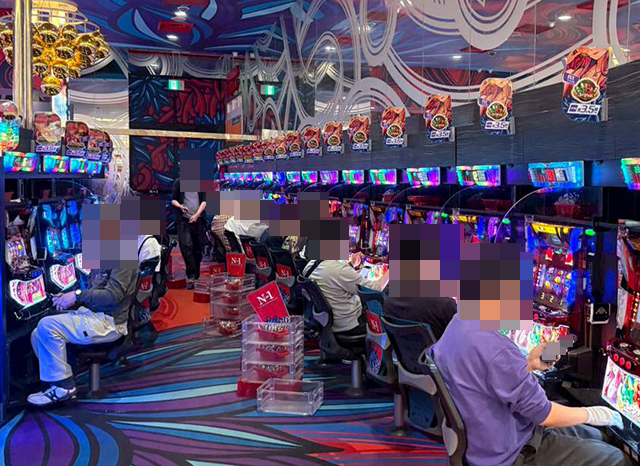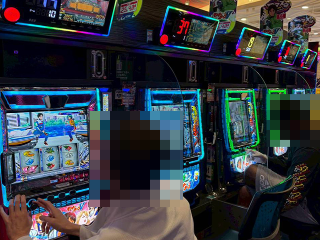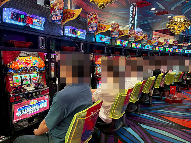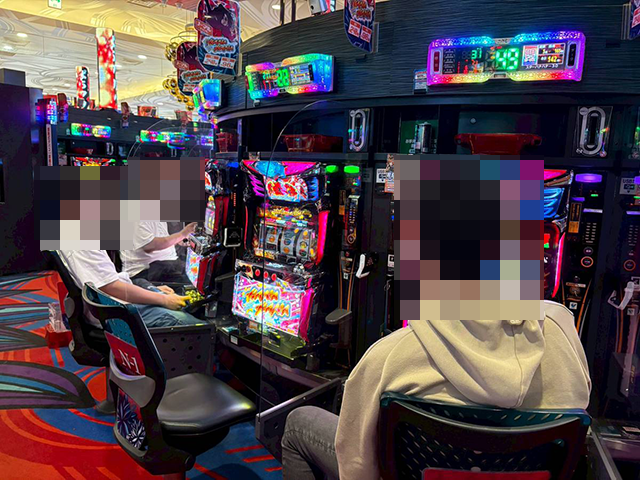 沖スロやスマスロなど、多彩な機種で華やかなシーンを目撃。