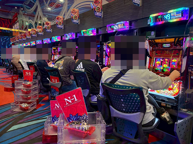 パチスロコーナーをみてみると、多くのプレイヤーが笑顔で遊技をおこなっていた。