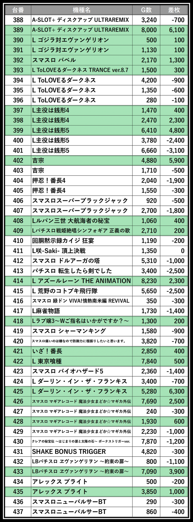 その結果の中から、ぱちタウンが注目すべきポイントを厳選してユーザーにお届け!プレイヤーが楽しんだ一日を下記データにて振り返ってみて欲しい。