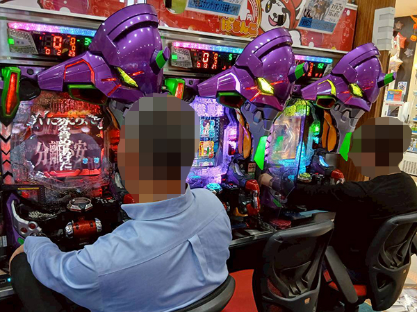 14時半ごろの4円パチンコをチェックすると、「eフィーバーブルーロック」や「新世紀エヴァンゲリオン〜未来への咆哮〜」で好調なプレイヤーを確認。時折見せる嬉しそうな表情が印象に残っている。