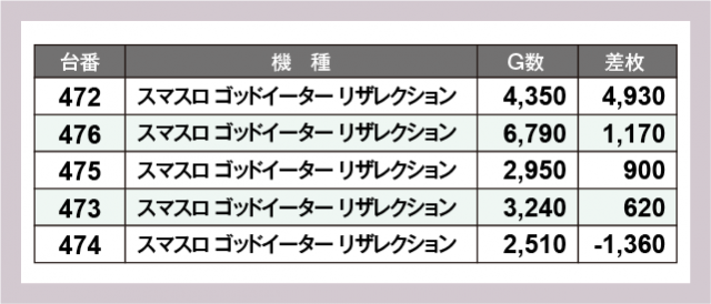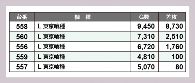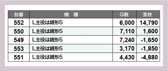※差枚数順に掲載しています