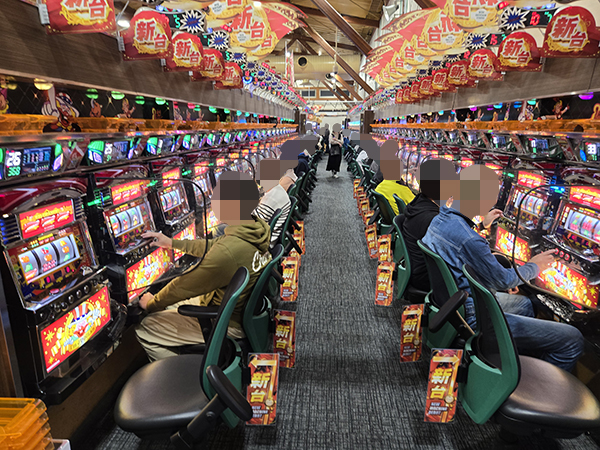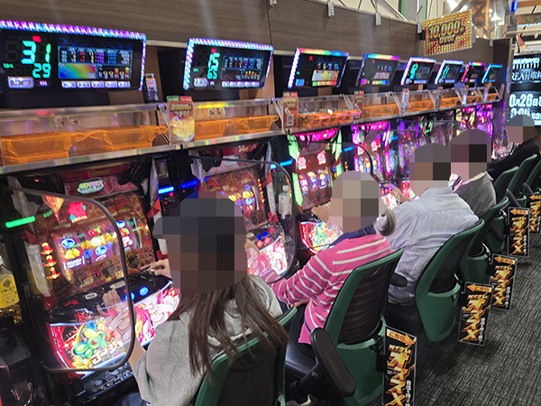 500円/90枚パチスロの支持も厚く、様々な機種で夢中でレバーを叩くプレイヤーが見られた。