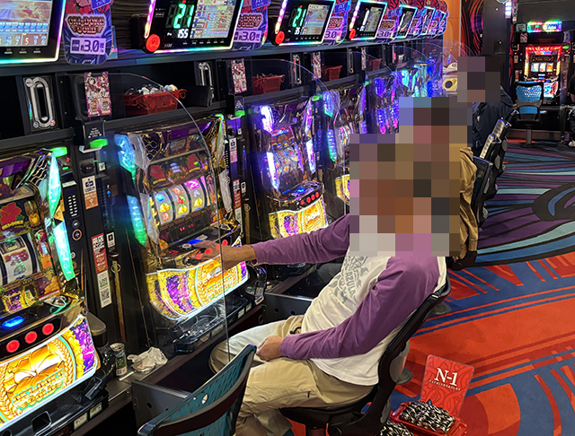 パチスロコーナーをまわっていると、「沖ドキ!ゴージャス-30」で我武者羅なシーンを目撃!
