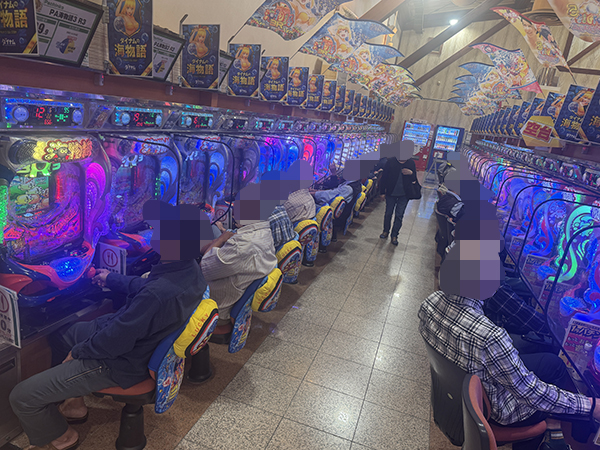 店内では貸し玉料金を問わず様々な機種で、心ゆくまで楽しむプレイヤーの姿が見られた。