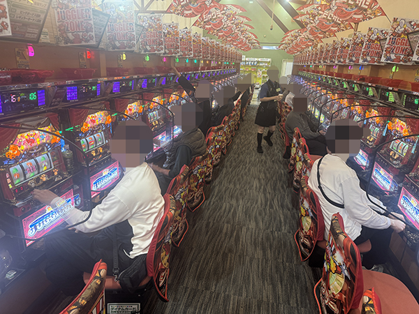 500円/90枚パチスロの支持も厚く、空き台が見当たらないほどの盛況ぶりだった。