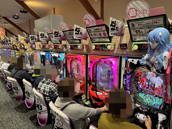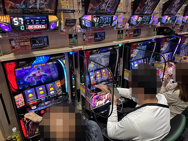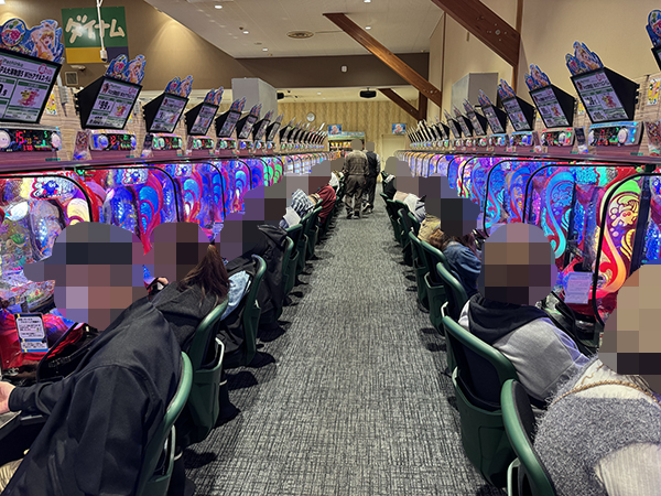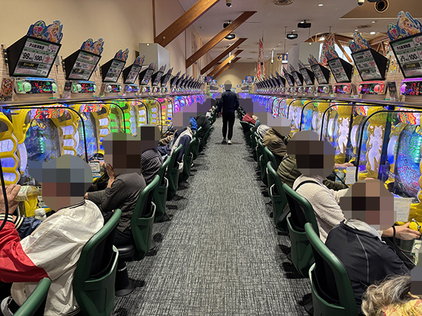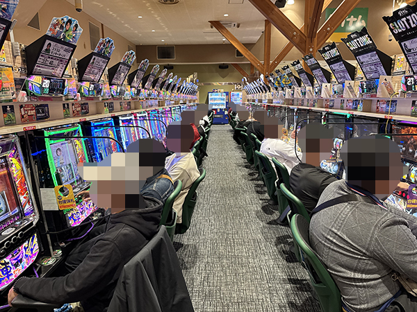 取材時は既に多くのプレイヤーが集結し、パチンコ・パチスロを問わずにぎやかな状況となっていた。