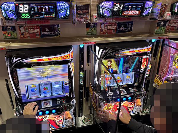 「スマスロモンキーターンV」や「スマスロ モンスターハンターライズ」、「ネオアイムジャグラーEX」などで機種性能を最大限に発揮するプレイヤーを確認。周囲から注目を集めていた。