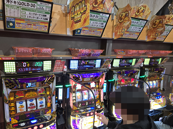 「沖ドキ!GOLD-30」や「沖ドキ!BLACK」といった沖ドキシリーズも大盛り上がり。機種の醍醐味を味わうプレイヤーを複数目にしている。