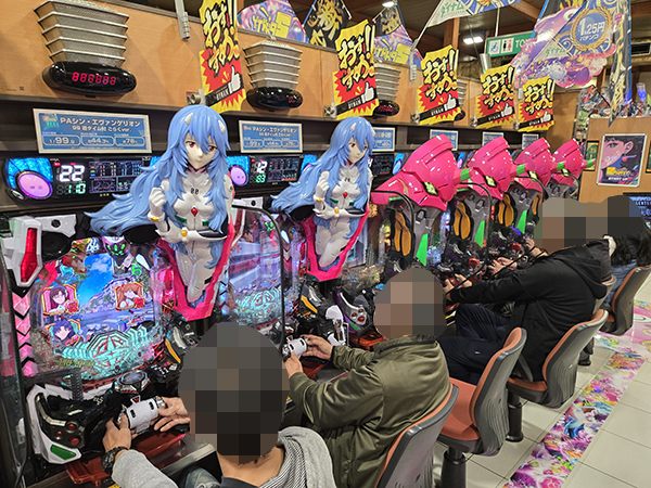 午後の1000円/800玉パチンコでは「新世紀エヴァンゲリオン〜未来への咆哮〜」や「ぱちんこ シン・エヴァンゲリオン Type レイ」、「PAシン・エヴァンゲリオン 99 遊タイム付 ごらくver.」のシマから活気が感じられ、プレイヤーのイキイキとした表情が印象に残っている。