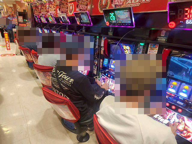 「スマスロ北斗の拳」の稼働率が高く、楽しげなプレイヤーも多い。