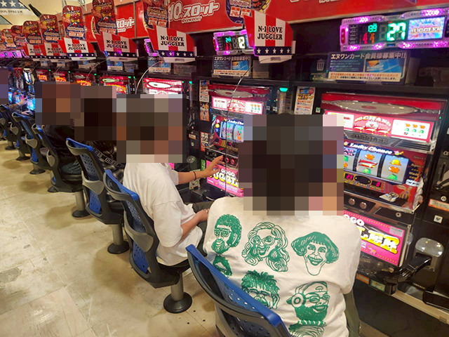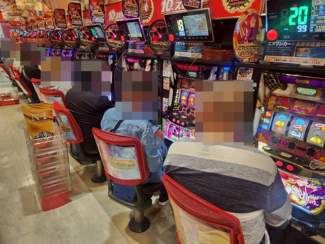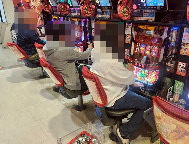 6箱以上の持ち玉を使い、笑顔で遊技をおこなっていた。