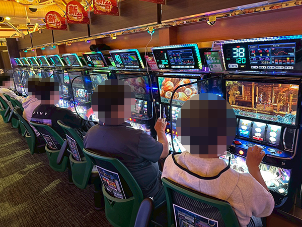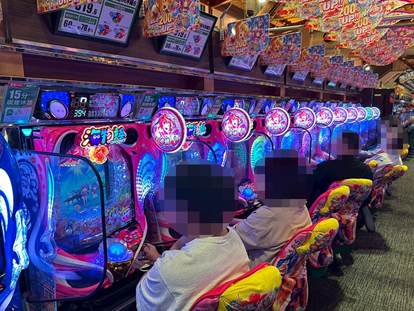 100円/89玉パチンコの盛り上がりも大きい。シマ全体に華やかな光景が広がっていた。