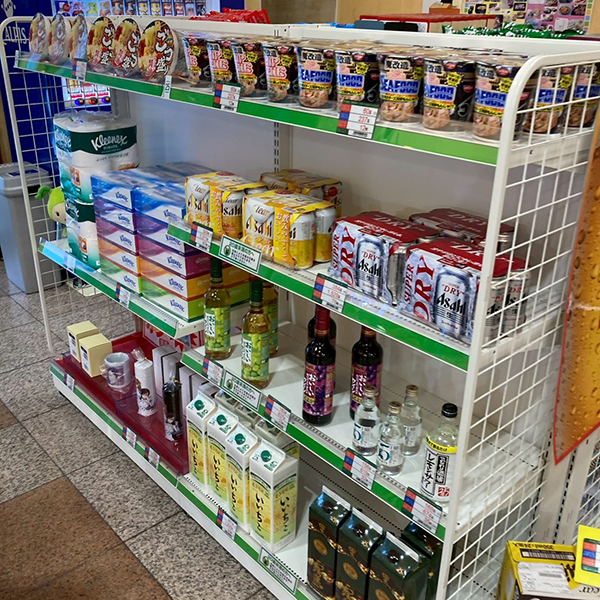 景品コーナーには日用品・インスタント食品・酒類など多彩なアイテムが揃っており、プレイヤーたちの目を引いていた。