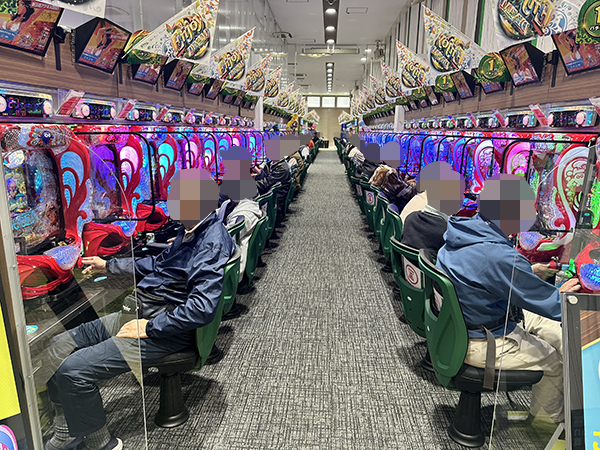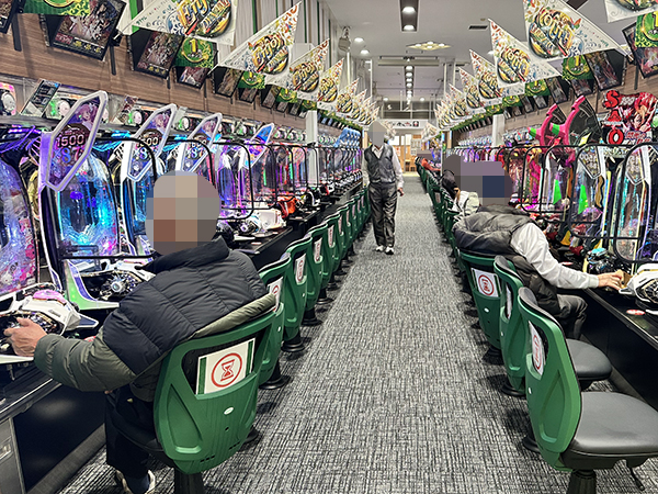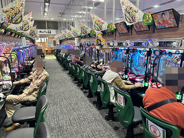 店内では貸し玉料金を問わず様々な機種で、心ゆくまで楽しむプレイヤーの姿が見られた。