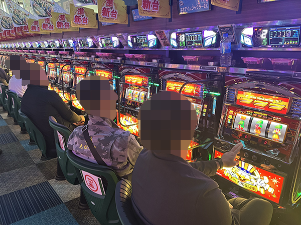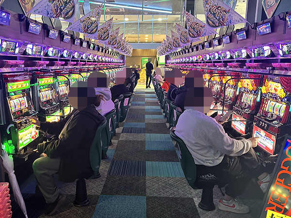 多彩な機種構成で人気の高い500円/89枚パチスロでは、真剣な表情でレバーを叩くプレイヤーの姿を数多く目撃している。