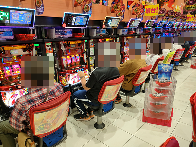 店内をまわっていくと、パチンコとパチスロのさまざまな機種で、プレイヤーの笑顔がみられた。