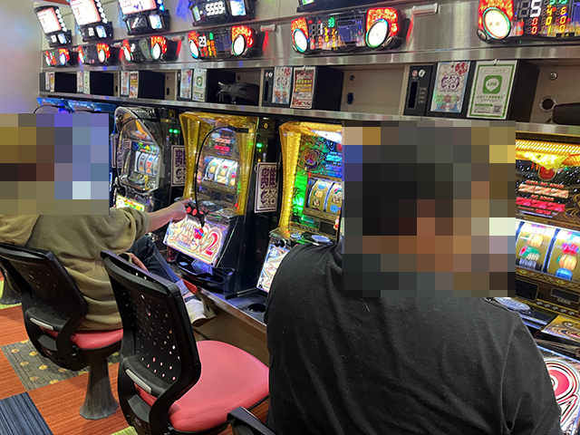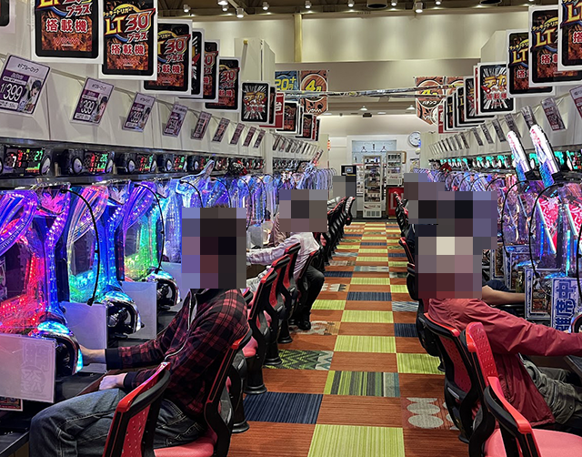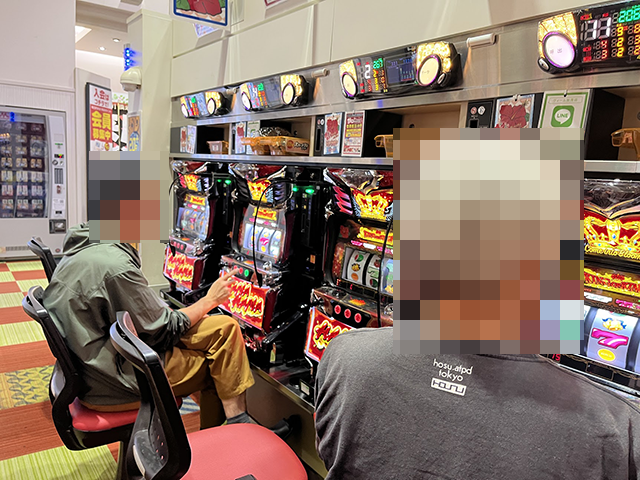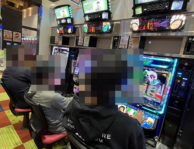 持ち玉を使い、うれしそうに遊技をおこなっていた。