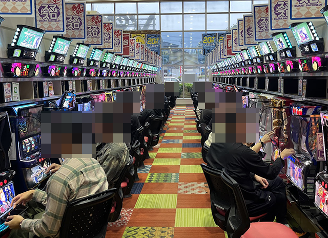 スマスロやスマパチなど、多彩な機種に笑顔が広がっており、多くのプレイヤーが遊技を満喫している様子であった。