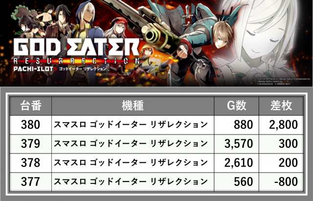 厳選された取材対象機種をはじめ、その他スロット全体から好記録が飛び出した!プレイヤーが楽しんだ1日を下記データにて振り返ってみて欲しい。
