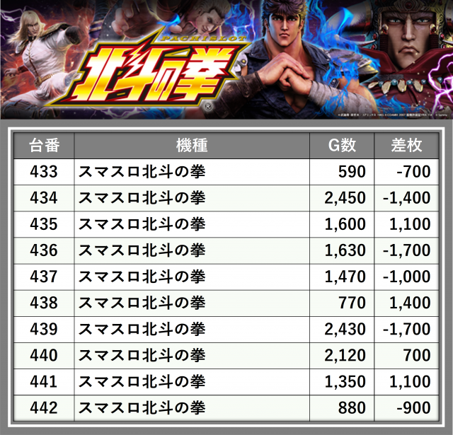※台番順に掲載しています