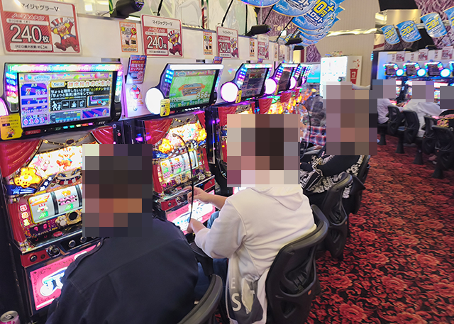 「マイジャグラーⅤ」や「ゴーゴージャグラー3」などで、持ち玉を使って遊技をおこなっている姿を目撃。