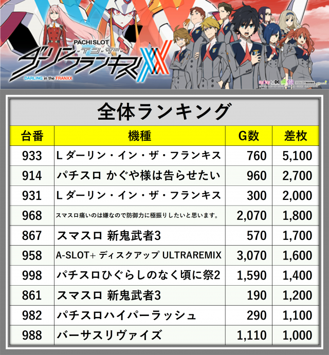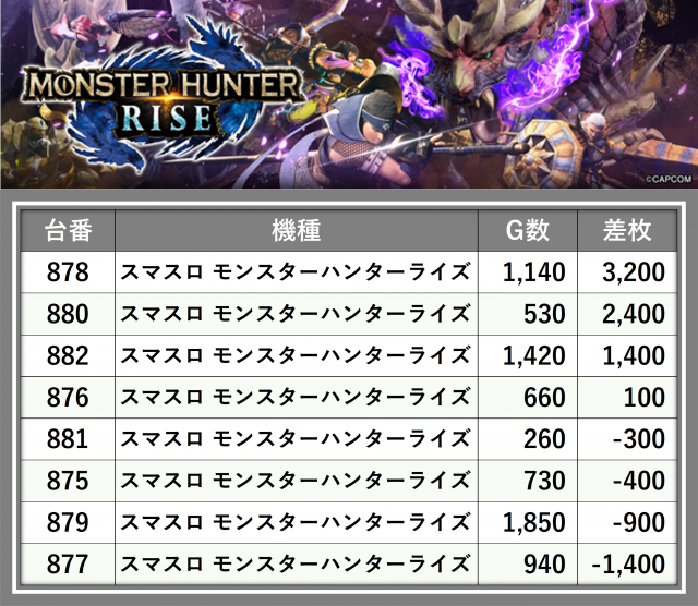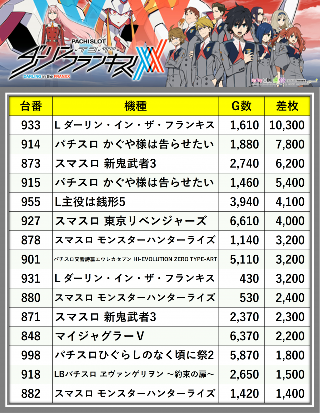 厳選された取材対象機種をはじめ、その他スロット全体から好記録が飛び出した!プレイヤーが楽しんだ1日を下記データにて振り返ってみて欲しい。