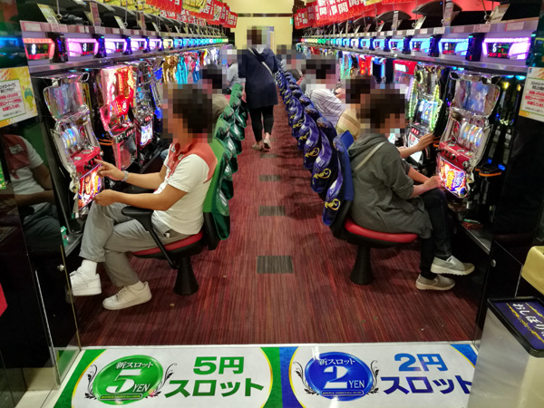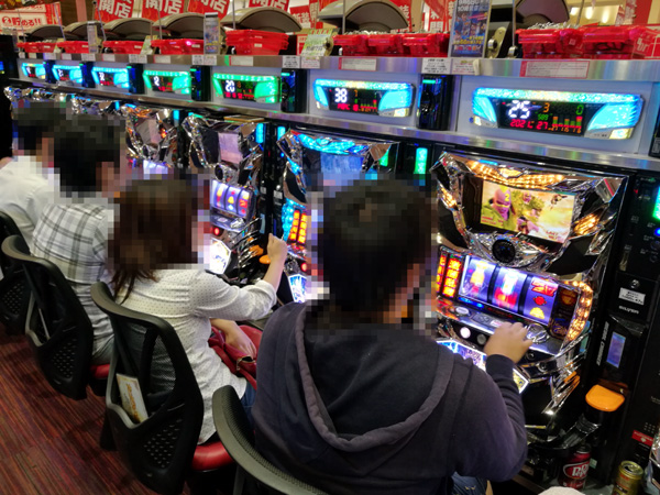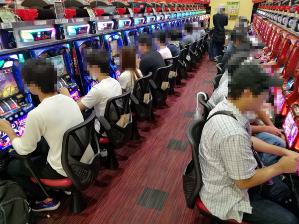 15時を過ぎた頃の1000円/47枚パチスロを見てみると、「パチスロ北斗の拳 新伝説創造」や「バジリスク~甲賀忍法帖~絆」、「押忍!番長3」、「ミリオンゴッド-神々の凱旋-」が人気で、大きな活気が感じられた。