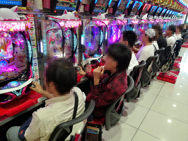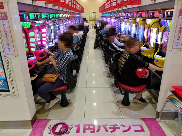 1円パチンコは、年配、女性プレイヤーの支持を集め、和やかな雰囲気。その中でも特に海物語シリーズの人気が高く、取材中、常に高稼働をキープしていた。
