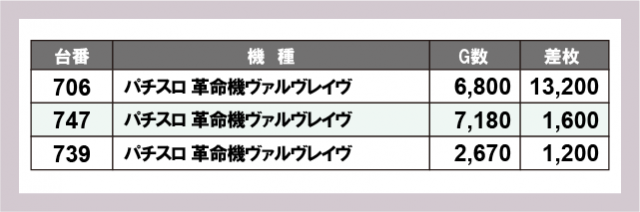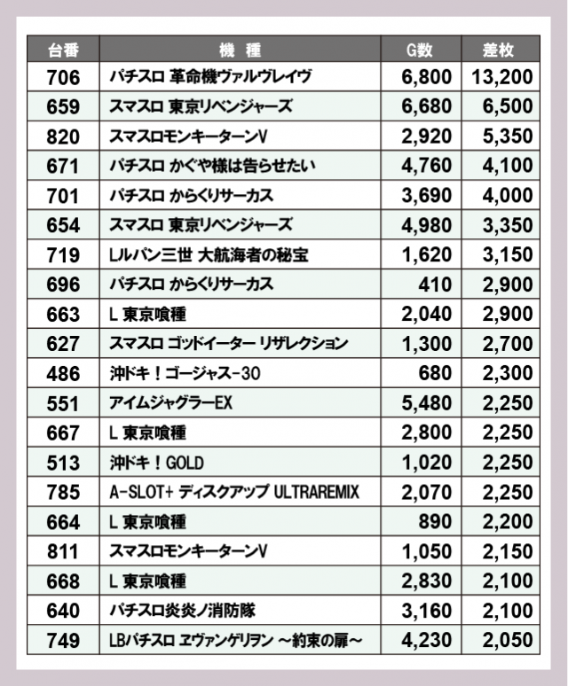 ※差枚数順に掲載しています