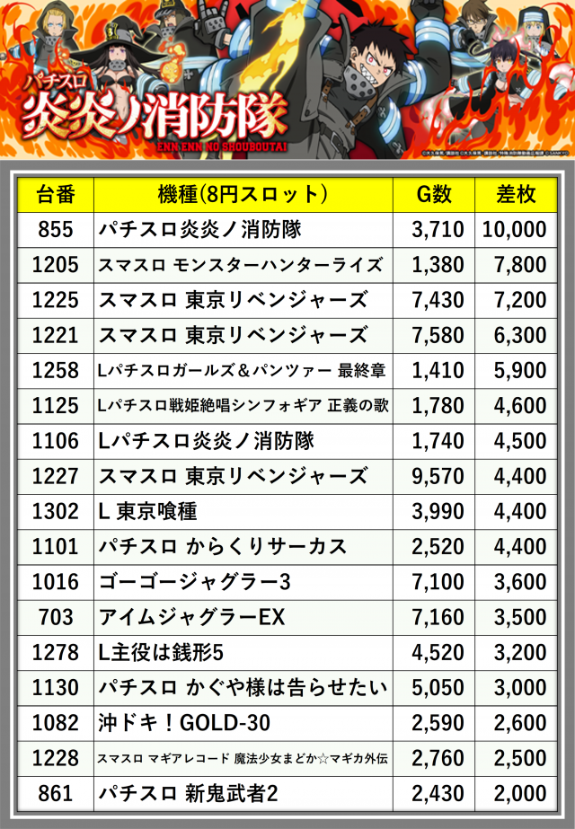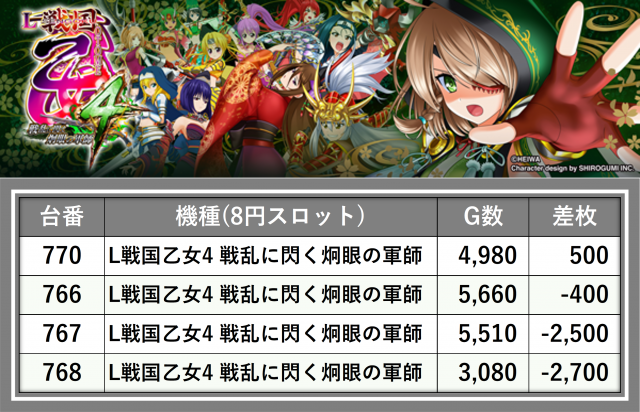 厳選された取材対象機種をはじめ、その他スロット全体から好記録が飛び出した!プレイヤーが楽しんだ1日を下記データにて振り返ってみて欲しい。