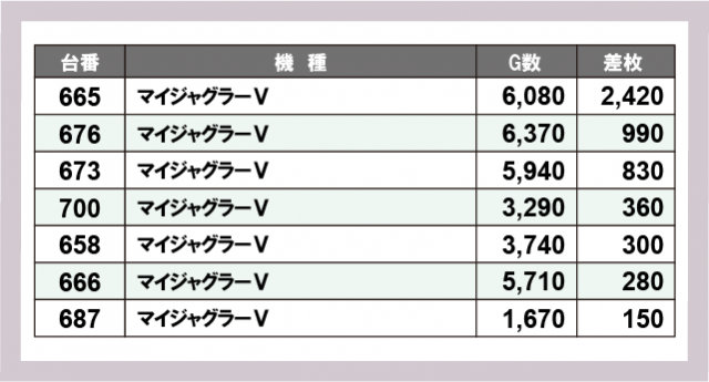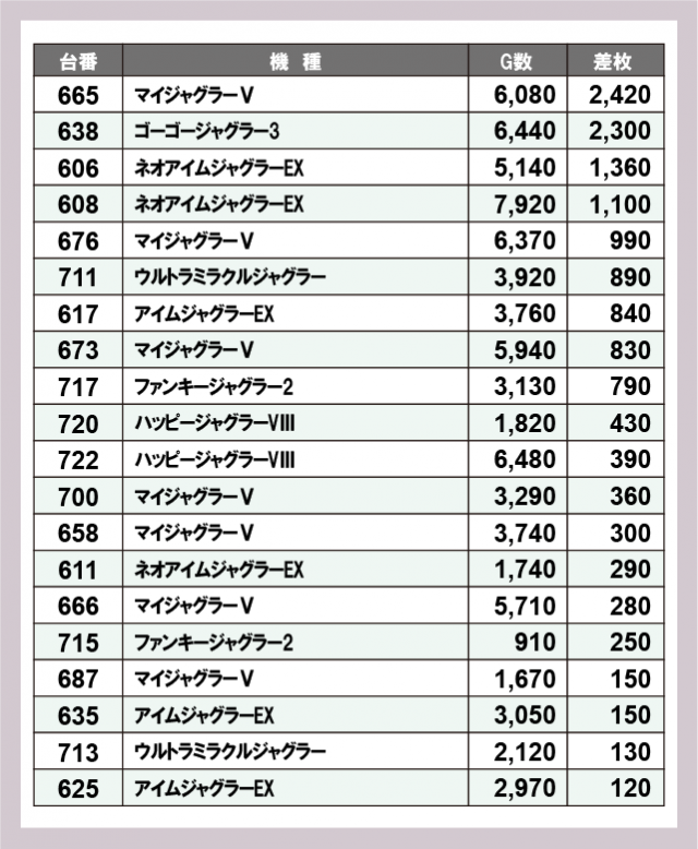 ジャグラー差枚ランキング