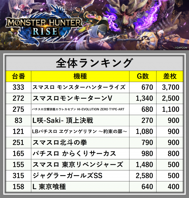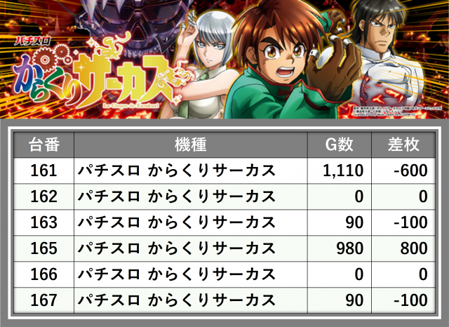 厳選された取材対象機種をはじめ、その他スロット全体から好記録が飛び出した!プレイヤーが楽しんだ1日を下記データにて振り返ってみて欲しい。