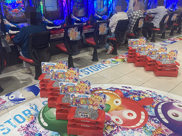 1円パチンコは「PA海物語3R3」をはじめとする海物語シリーズの支持も厚く、見事な活躍をするプレイヤーがあちこちで見られた。