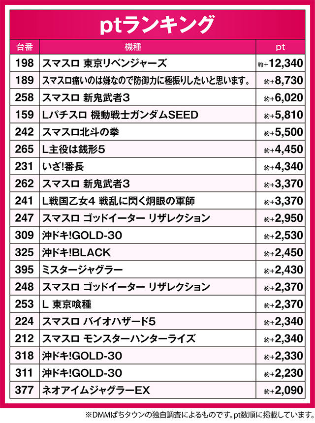 ※なお、本記事中のデータは全てDMMぱちタウンの独自調査によるものです