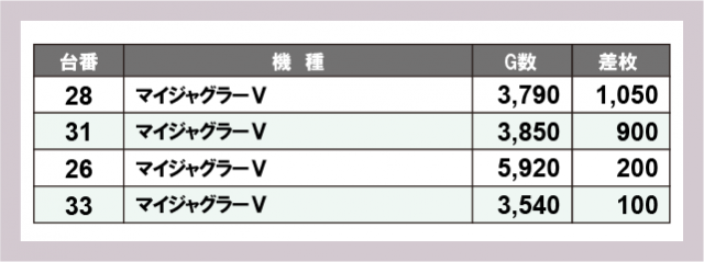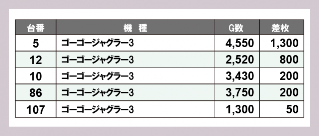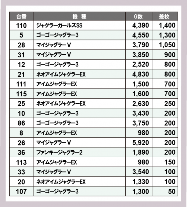 ジャグラー差枚ランキング