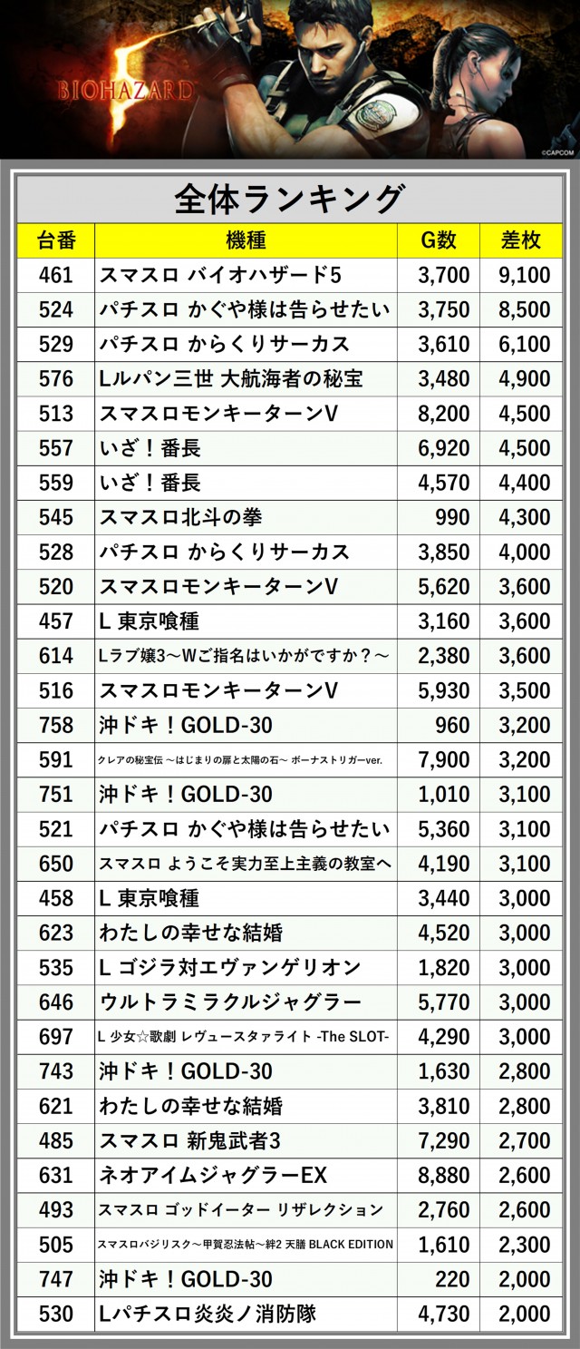 厳選された取材対象機種をはじめ、その他スロット全体から好記録が飛び出した!プレイヤーが楽しんだ1日を下記データにて振り返ってみて欲しい。