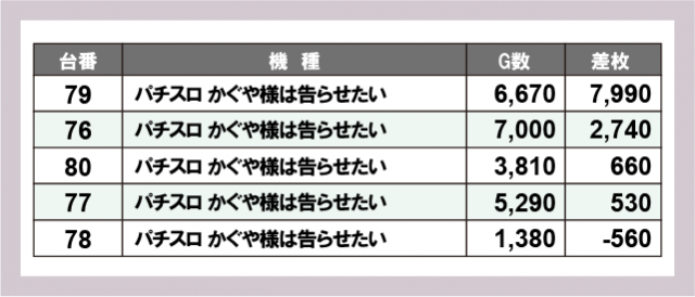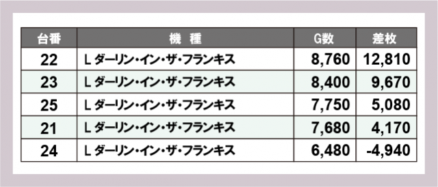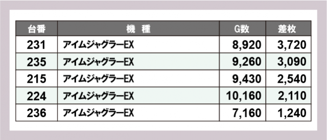 ※差枚数順に掲載しています