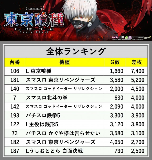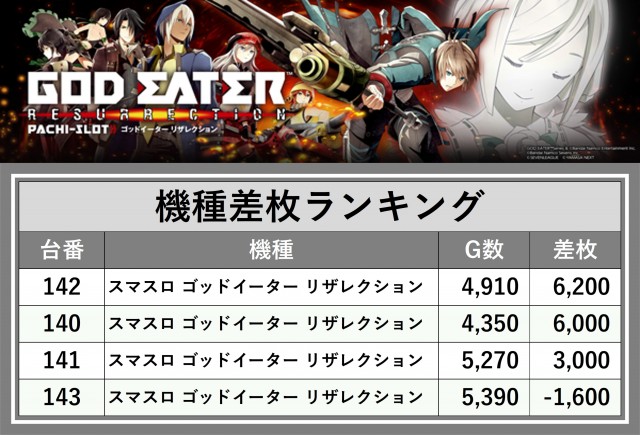 厳選された取材対象機種をはじめ、その他スロット全体から好記録が飛び出した!プレイヤーが楽しんだ1日を下記データにて振り返ってみて欲しい。