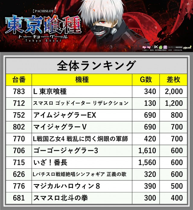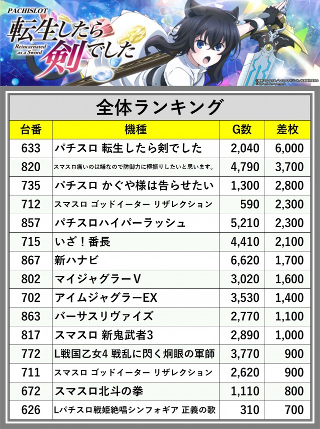 ※差枚数順に掲載しています